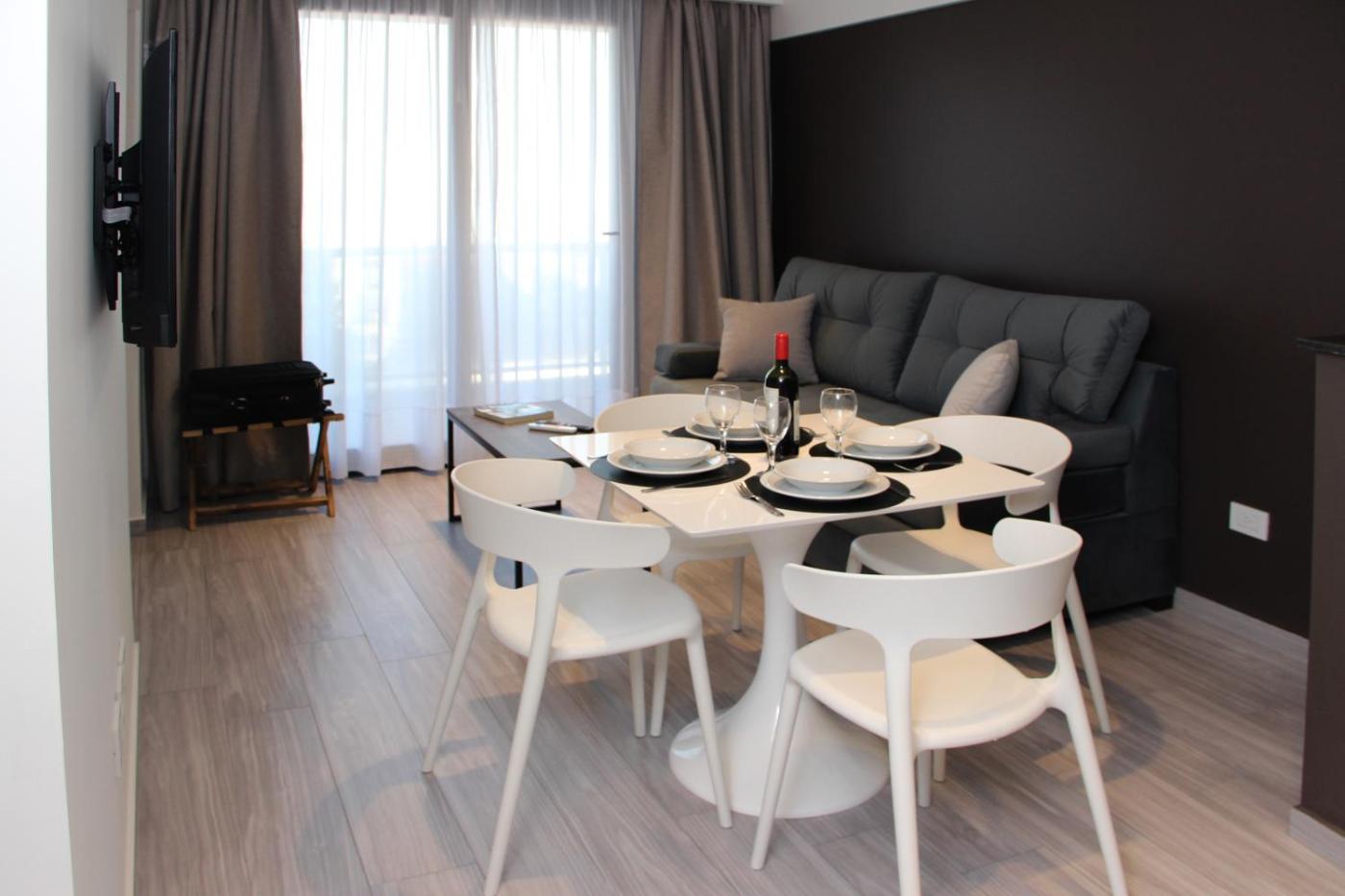 Apartamento de 1 dormitorio. Este apartamento cuenta con entrada privada, aire acondicionado, sala de estar, 1 dormitorio independiente y baño con ducha y bidet. La cocina está bien equipada con fogón, nevera, utensilios de cocina y horno. Este apartamento también dispone de balcón con vistas a la ciudad, paredes insonorizadas y TV de pantalla plana por cable. En esta unidad hay 3 camas. ;