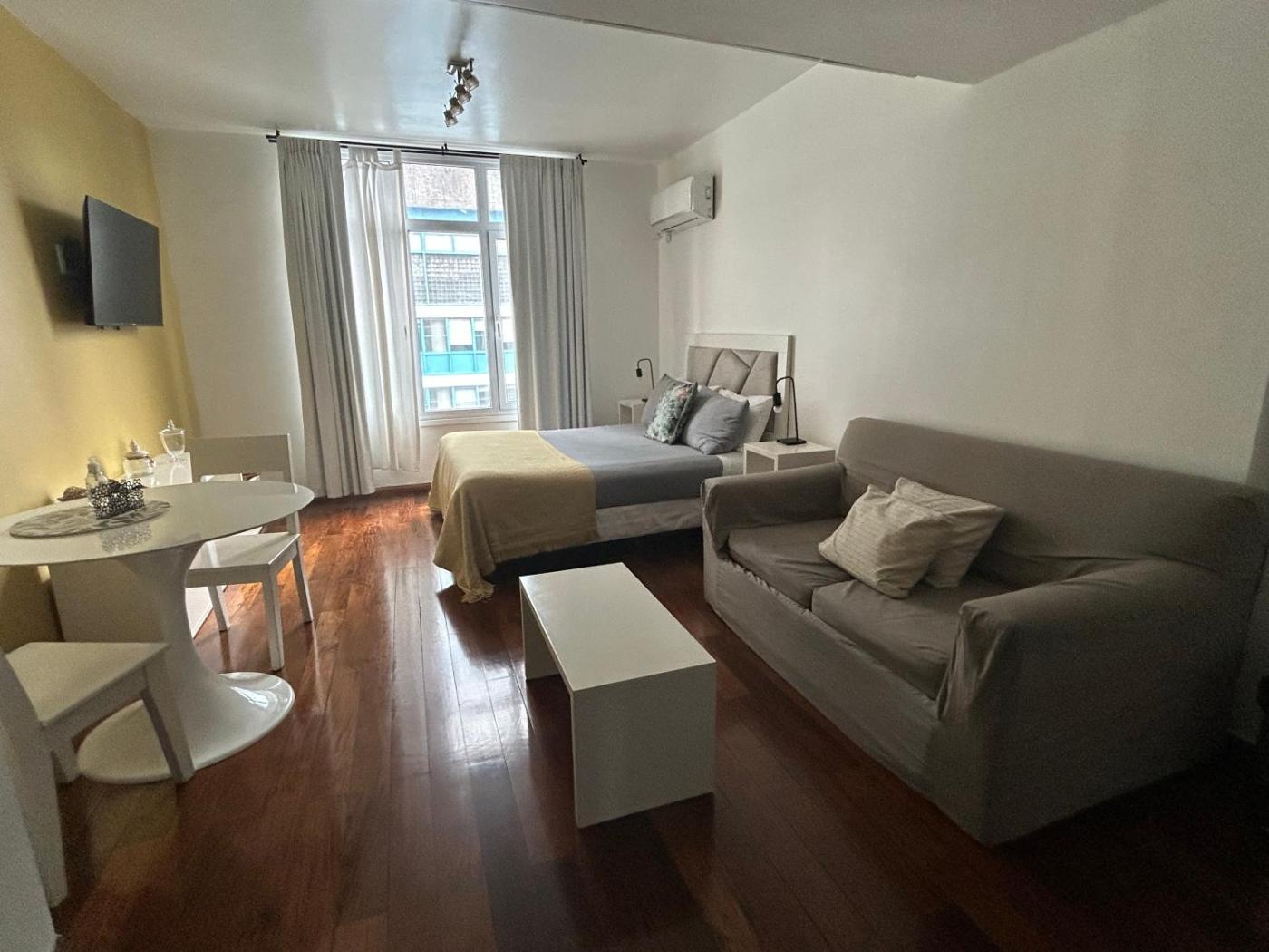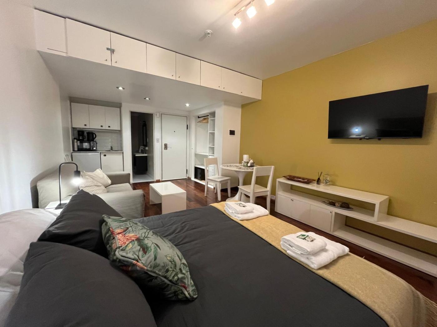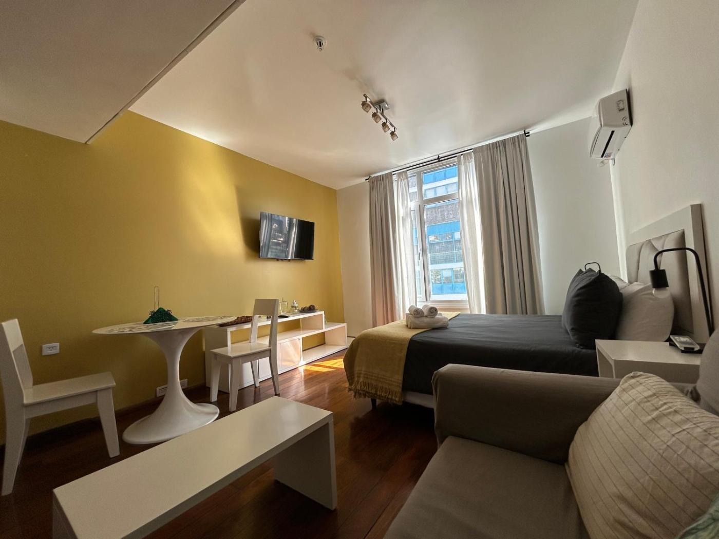 Estudio. The studio offers air conditioning, a tea and coffee maker, as well as a private bathroom boasting a bath and a shower. The kitchenette is fitted with a refrigerator, a microwave and a toaster. The studio features a flat-screen TV, a dining area, a sofa, parquet floors as well as city views. The unit has 1 bed.