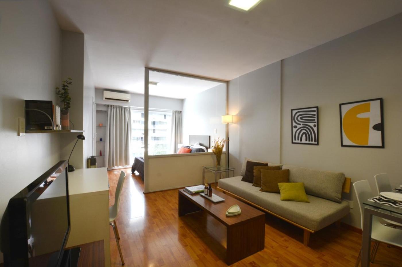 Este apartamento de 1 dormitorio ofrece TV de pantalla plana, aire acondicionado y sala de estar.