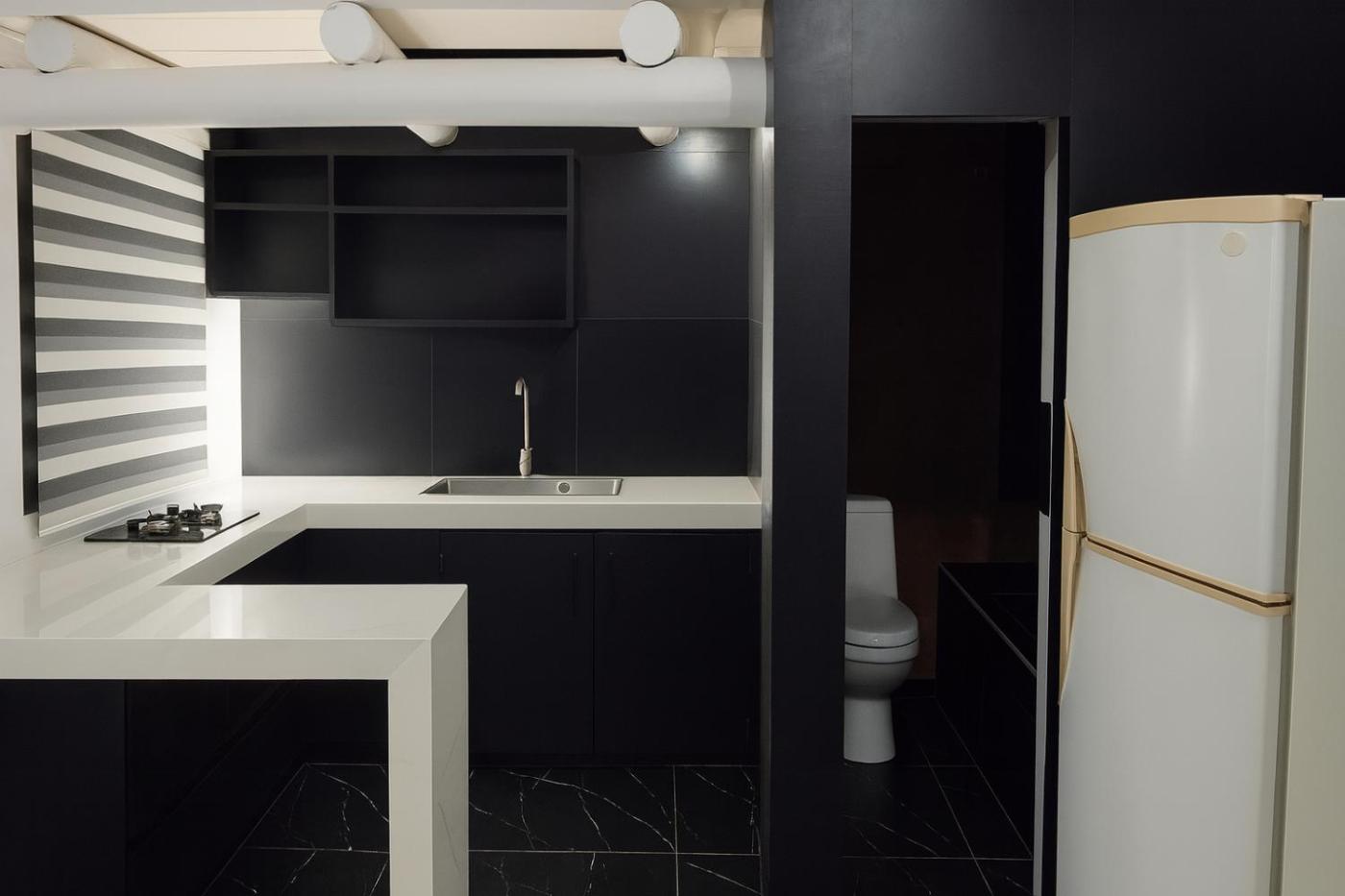 Este apartamento tiene 1 dormitorio, cocina con nevera y horno, TV de pantalla plana, zona de estar y 1 baño con ducha.