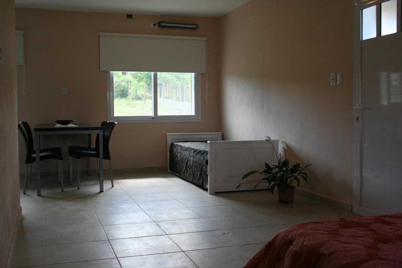 Estudio con vistas al jardín. Este apartamento estudio "Monoambiente" tiene tostadora, microondas y barbacoa. Este alojamiento es una habitación completamente abierta con cama doble, sala de estar y zona de comedor con cocina. ;
