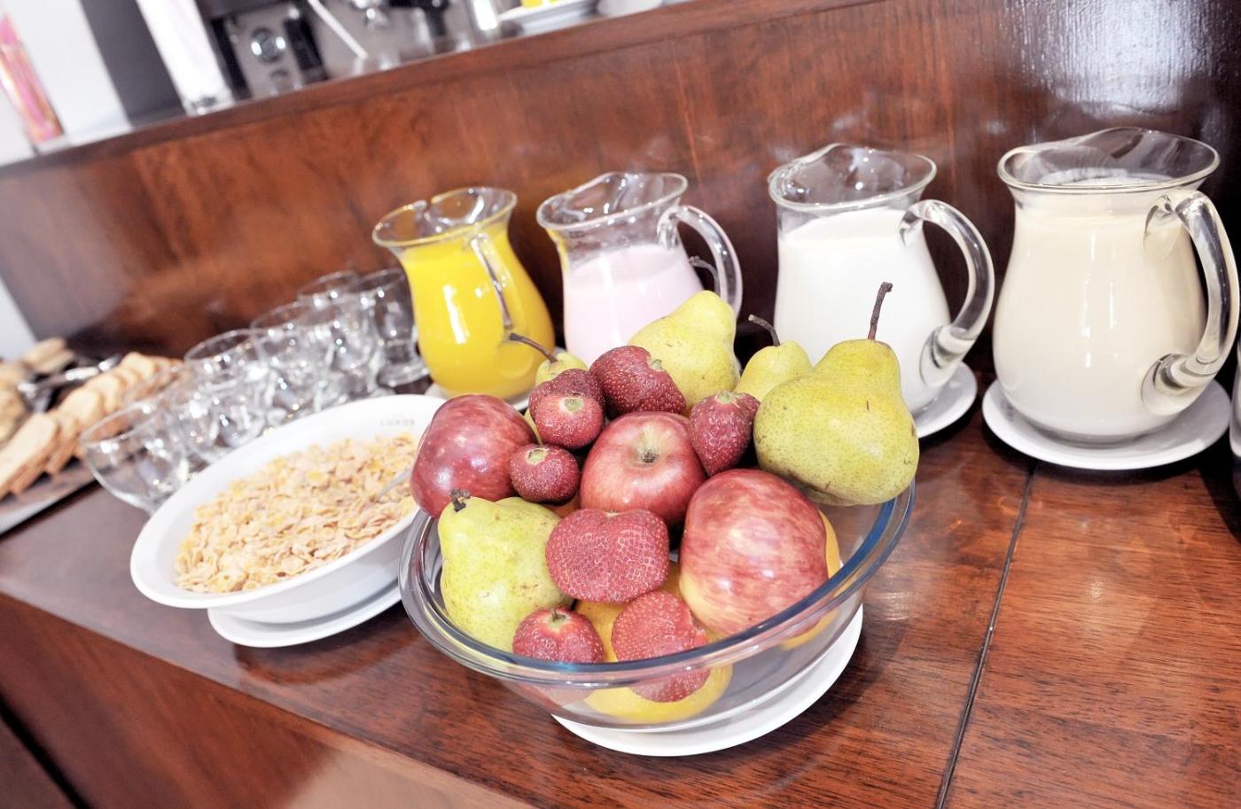 Todos los días se sirve un desayuno completo que incluye café, té, zumos, yogur, fruta y pan recién horneado, entre otros productos. El establecimiento ofrece servicio de habitaciones y alberga un restaurante que sirve platos a la carta durante todo el día.