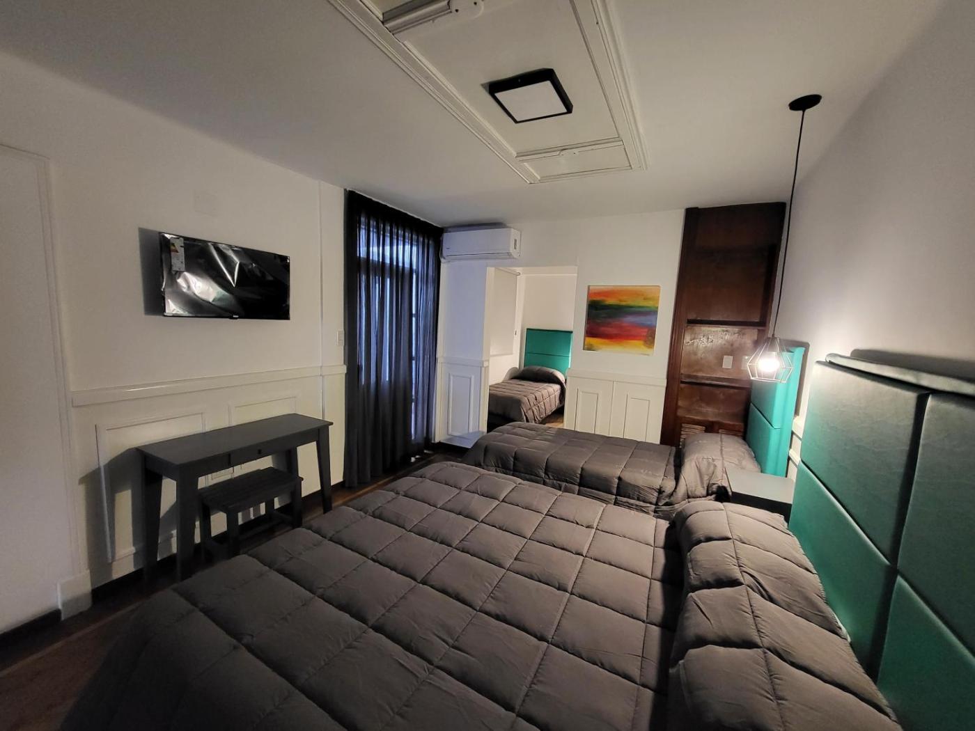 Habitación Cuádruple con baño compartido. This air-conditioned quadruple room is comprised of a flat-screen TV with streaming services, a shared bathroom as well as a balcony with city views. The unit has 4 beds. ;