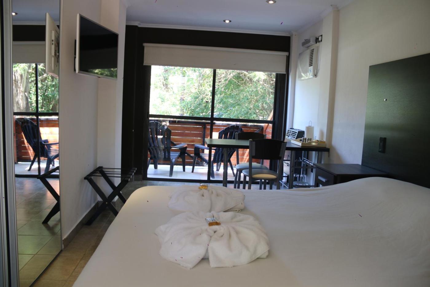 Habitación Doble Estándar. Esta habitación cuenta con zona de cocina con cafetera y microondas, aire acondicionado y baño privado con ducha escocesa. ;
